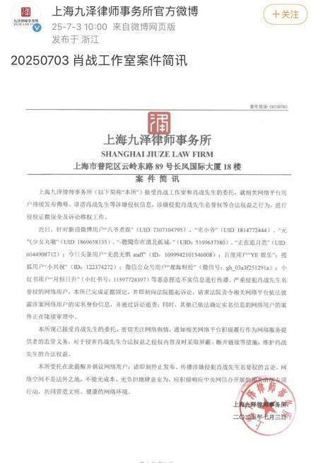 今天肖战工作室委托上海九泽律师事务所进行证据保全牛博,并对相关侵权用户提起诉讼。这次的告黑可谓是阵仗满满,全平台的用户都有,这次是发生了啥呢?